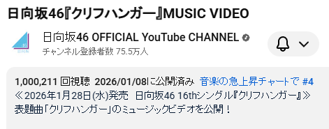 【日向坂46】クリフハンガー、24時間再生数で第六感超え達成