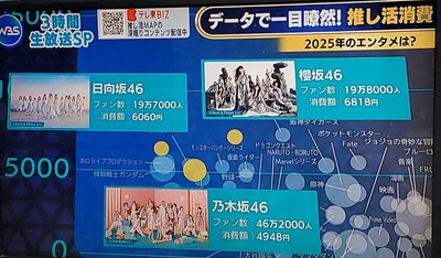 【推し活】2025年の坂道グループ、ファン数と平均消費額がこちら【乃木坂46・櫻坂46・日向坂46】